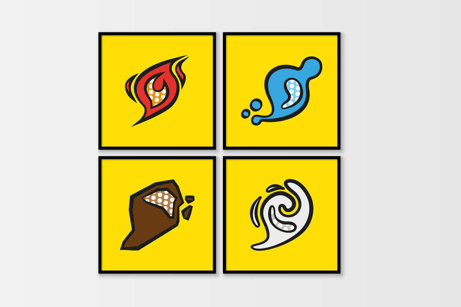The design for the icons was taken from the worlds of comics, and in particular from the world of Roy Lichtenstein.